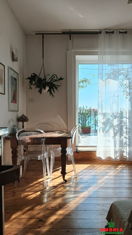 L’attico si apre su un ingresso che conduce a un accogliente soggiorno con accesso a un ampio terrazzo panoramico, perfetto per momenti di relax e convivialità all’aperto. Il cucinotto è funzionale e ben organizzato, mentre la camera da letto dispone di un proprio balcone. L’immobile è parzialmente arredato e dotato di riscaldamento centralizzato, aria condizionata, videocitofono, infissi nuovi e pavimento in parquet. Completa la soluzione un bagno finestrato con box doccia.